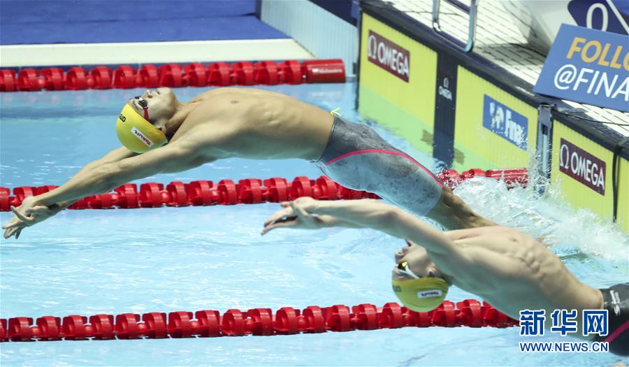 7月28日,中国队选手徐嘉余(左)在比赛中。 当日,在韩国光州举行的2019国际泳联游泳世锦赛男子4x100米混合泳接力决赛中,中国队以3分31秒61的成绩获得第七名。 新华社记者李钢摄