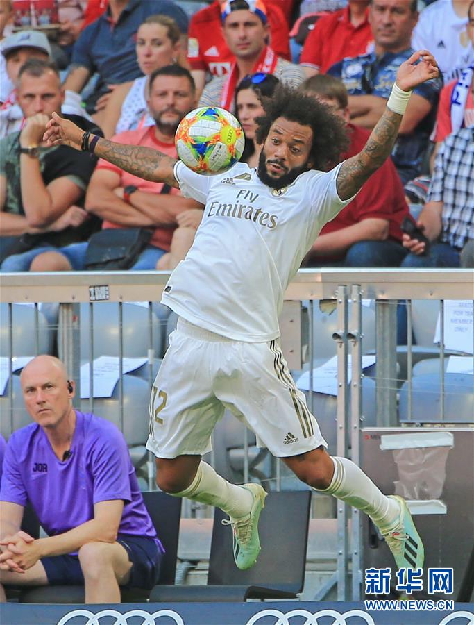 7月30日,皇家马德里队球员马塞洛在比赛中停球。 当日,在德国慕尼黑举行的奥迪杯足球赛半决赛中,西甲皇家马德里队以0比1不敌英超托特纳姆热刺队,无缘决赛。 新华社发(菲利普·鲁伊兹摄)