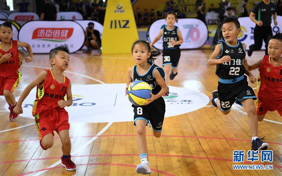 7月31日,在U6组决赛中,佛山江门佳儿队小选手吴雨菲(中)带球进攻。 当日,2018-2019赛季NYBO青少年篮球公开赛全国总决赛在深圳市体育运动学校落下帷幕。来自全国40个赛区的110支球队、千余名小选手在6天内通过小组赛、淘汰赛决出年度总冠军,并决出各组别得分王、篮板王、助攻王等个人奖项。 新华社记者梁旭摄