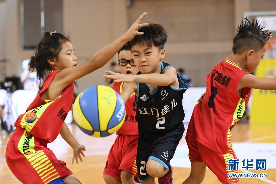 7月31日,在U6组决赛中,佛山江门佳儿队小选手郑浩权(右二)带球进攻。 当日,2018-2019赛季NYBO青少年篮球公开赛全国总决赛在深圳市体育运动学校落下帷幕。来自全国40个赛区的110支球队、千余名小选手在6天内通过小组赛、淘汰赛决出年度总冠军,并决出各组别得分王、篮板王、助攻王等个人奖项。 新华社记者梁旭摄