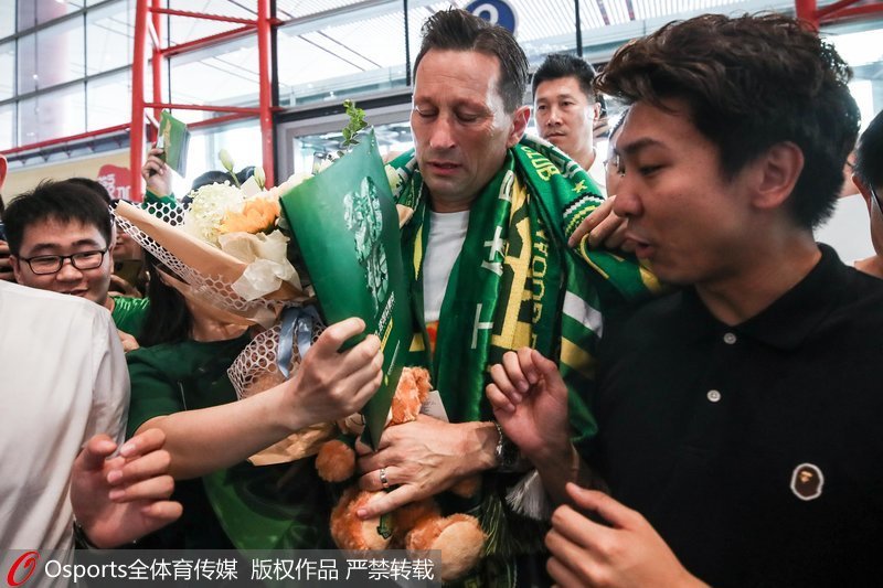 高清:上千名球迷到机场送行 国安前主帅施密特激动落泪