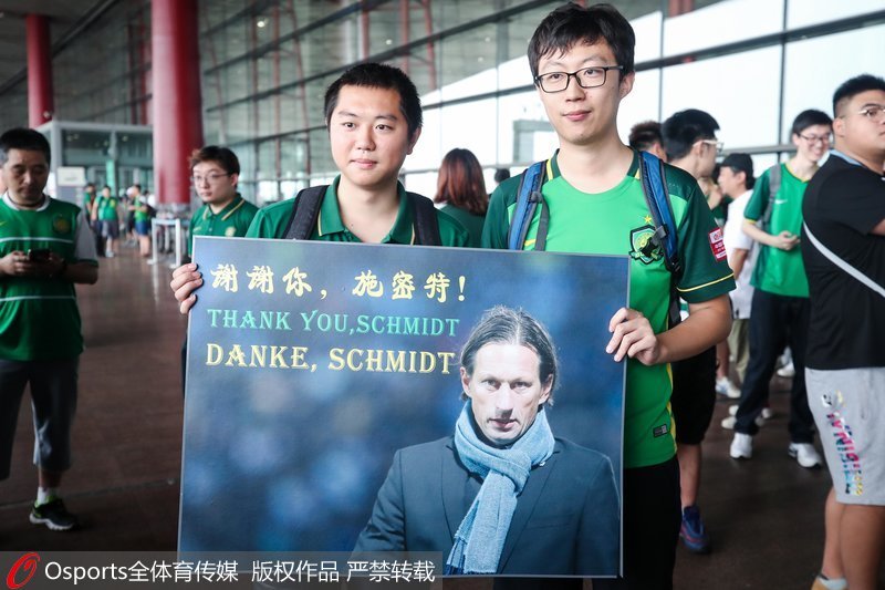 人民网北京8月4日电(管若寒)北京时间8月4日,国安前主帅施密特到达北京首都国际机场,即将乘坐航班离开北京,上千名国安球迷早早守候在机场,为这位陪伴国安两年的主帅送行,施密特激动落泪。