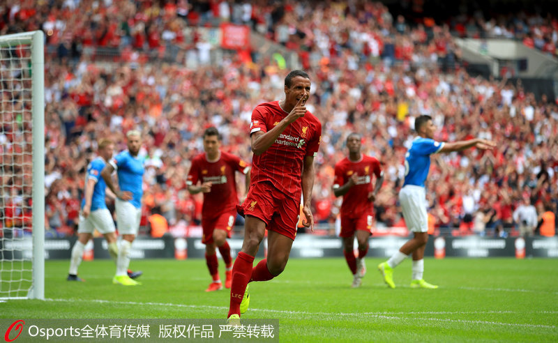 人民网北京8月5日电 北京时间8月4日22时(英国当地时间15时),2019/20赛季英格兰社区盾杯在温布利球场展开角逐,曼城对阵利物浦。斯特林进球,马蒂普扳平比分,双方90分钟内战平,点球大战中曼城5-4胜出,最终以总分6-5险胜利物浦夺冠。