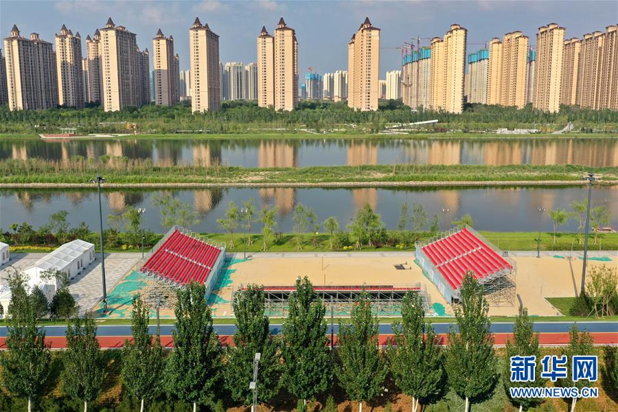 这是7月26日拍摄的太原市沙滩排球场(无人机拍摄)。 新华社记者曹阳摄