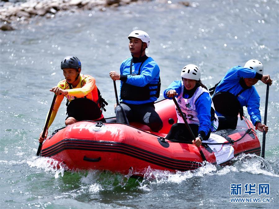 8月6日,广东省河源水上运动协会的选手在漂流长距离赛中。 当日,全国漂流俱乐部联赛暨全国桨板公开赛在青海省玉树藏族自治州玉树市开赛,全国19支队伍在玉树市巴塘河流域挥桨角逐。赛事分漂流长距离赛、桨板200米冲刺赛和800米技术赛三个项目。 新华社记者张龙摄