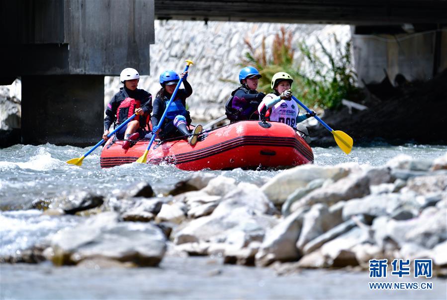 8月6日,西安爱浪水上俱乐部的选手在漂流长距离赛中。 当日,全国漂流俱乐部联赛暨全国桨板公开赛在青海省玉树藏族自治州玉树市开赛,全国19支队伍在玉树市巴塘河流域挥桨角逐。赛事分漂流长距离赛、桨板200米冲刺赛和800米技术赛三个项目。 新华社记者张龙摄