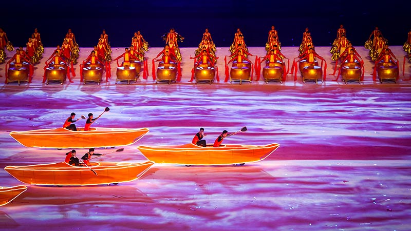 人民网太原8月8日电(杨乔栋)今晚,第二届全国青年运动会在山西省体育中心主体育场——“红灯笼”正式开幕。开幕式分为入场仪式和文体展演两部分,总时长90分钟。其中,文体展演分六个部分,包括序篇《时代召唤》、第一篇章《红日照东方》、第二篇章《水击三千里》、第三篇章《万里长空行》、点火仪式 《凤凰涅槃》及尾声《我爱你中国》。(本文图片均由二青会组委会提供)