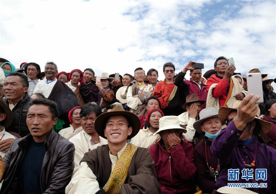 8月9日,观众在西藏当雄县观看民间传统拔河比赛。 当天,西藏当雄县海拔4300米的赛马场举行激烈的民间传统拔河比赛,来自当雄县各乡镇的牧民妇女盛装参加拔河比赛,场面喜庆而热闹。 新华社记者 侯东涛 摄