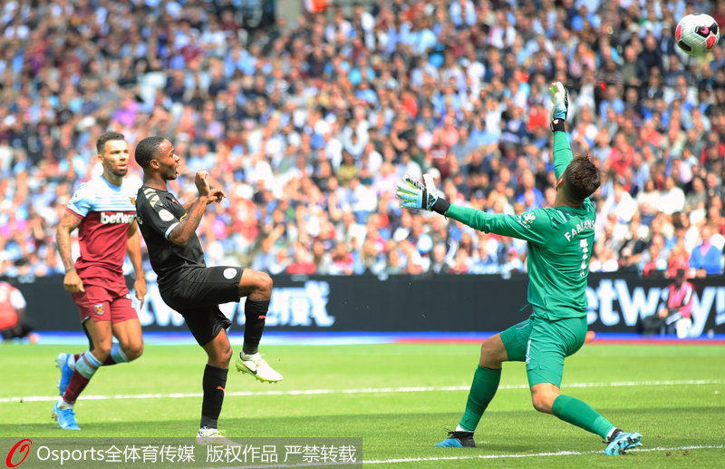 人民网北京8月11日电 北京时间10日19:30,2019-20赛季英超首轮继续展开,卫冕冠军曼城客场挑战西汉姆联。上半场凯尔-沃克助攻热苏斯先拔头筹。下半场德布劳内助攻斯特林扩大比分,斯特林随后助攻热苏斯破门,但VAR大发神威,认定斯特林越位在先,进球无效,这也是英超VAR首次取消进球。马赫雷斯之后助攻斯特林再下一城,之后马赫雷斯造点,阿圭罗操刀主罚被扑,VAR认定门将法比安斯基提前移动,阿圭罗二次主罚命中!马赫雷斯补时助攻斯特林完成帽子戏法。最终,曼城5-0大胜西汉姆联,取得新赛季开门红。