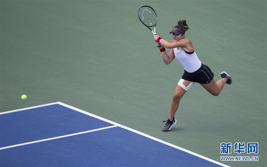 8月11日,安德烈埃斯库在比赛中回球。 当日,在加拿大多伦多进行的2019年加拿大罗杰斯杯网球赛女单决赛中,美国选手小威(塞雷娜·威廉姆斯)因伤退赛,加拿大选手安德烈埃斯库获得冠军。 新华社发(邹峥摄)
