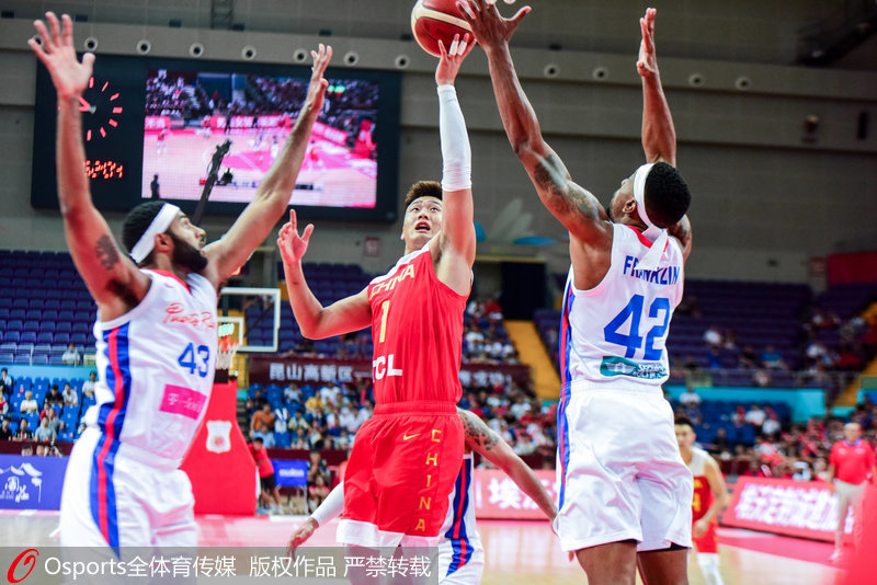 人民网北京8月13日电(杨磊) 北京时间8月12日,中国男篮迎战昆山四国赛的最后一个对手波多黎各男篮。易建联砍下22分8篮板,王哲林得到17分, 最终中国男篮以78-72战胜波多黎各,以全胜的成绩收官此次昆山四国赛。