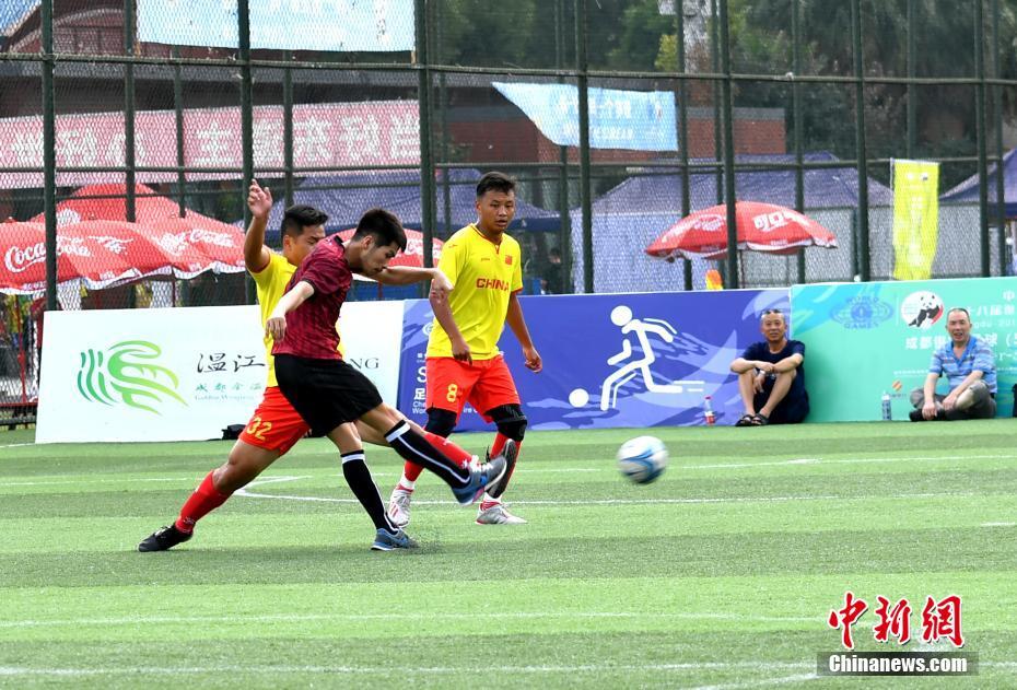 8月14日,四川成都,第十八届世界警察和消防员运动会五人制足球比赛上,泰国皇家警察队对阵四川监狱警队。经过激烈角逐,最终泰国皇家警察代表队以7:1的比分战胜四川监狱警队。 中新社记者 安源 摄