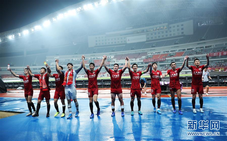 图为上海上港队球员在赛后向球迷致意。 新华社发(海沙尔摄)