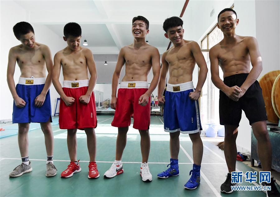 14岁的侯晨熙是西安市体育运动学校拳击队的一名小拳手。今年7月,练习了两年拳击的他在陕西省青少年拳击锦标赛上夺得了自己的第一个省级冠军。然而,冠军的暑假却很短暂,侯晨熙赛后仅休息了两周就重新回到了训练场。 住校练习拳击的侯晨熙平日里上午学习文化课,下午进行体育训练。时值暑假,侯晨熙与队友们不用苦读“万卷书”,但训练却变成了“全日制”。上午练体能、下午练技术,看似单调乏味的假期生活在这名小拳手的眼里却是精彩纷呈。“热爱拳击就要好好训练,我觉得假期这样过挺好的。”由于年龄不满15周岁,侯晨熙无法参加今年举行的第二届全国青年运动会,但是他早为自己定下了目标,“下一届青运会我要站在最高的领奖台上!” 小拳手们在训练馆一遍遍练习移动、出拳、躲闪。拳击手套击打手靶的声音响彻训练馆。这个夏天,还有千万个像侯晨熙一样的小运动员,在训练场上用汗水浇筑着自己的体育梦。 这是侯晨熙(中)在训练后与队友对比腹肌(8月12日摄)。 新华社记者张博文摄