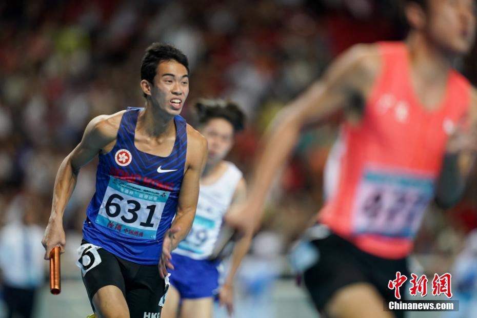 8月16日,山西太原,中国第二届青年运动会体校甲组男子4×100米接力决赛上,香港队获得第六名。图为香港队第一棒谢以轩。中新社记者 武俊杰 摄
