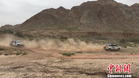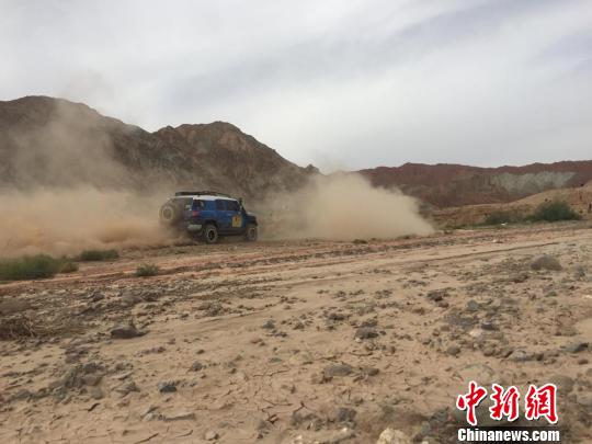图为在戈壁滩上飞驰的越野车。 杜钢峰 摄