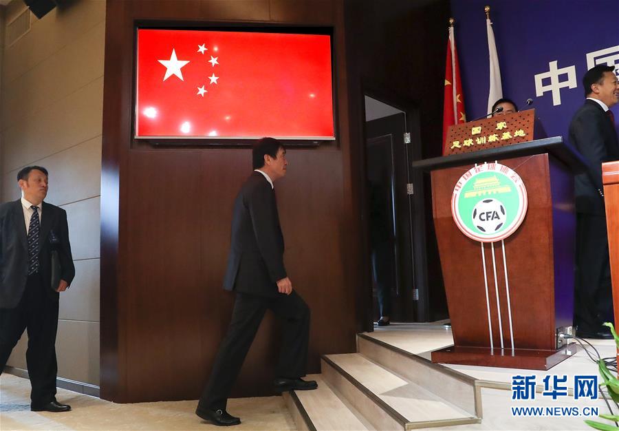 8月22日,中国足协换届筹备工作组组长陈戌源(左二)步入会场。 当日,第十一届中国足球协会会员大会在河北香河国家足球训练基地召开。 新华社记者曹灿摄