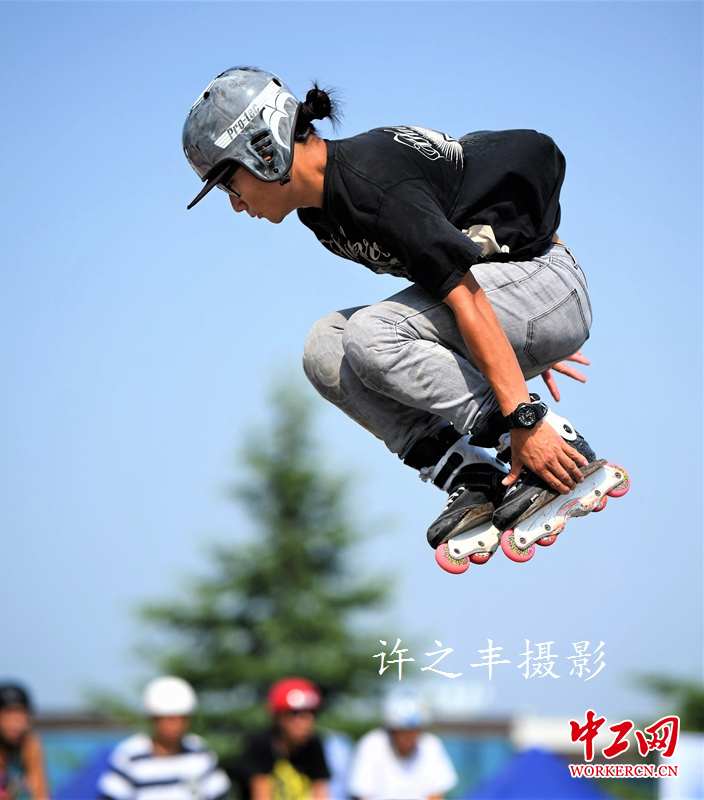 极限轮滑也称特技轮滑,玩法包括U型池、碗池,这些传统极限场地。轮滑是一项休闲运动,但同时也是竞技项目,随着它的不断完善,已形成多项轮滑竞技项目。图为2019中国极限运动大会极限的轮滑比赛分别进行街区追逐赛和自由式轮滑赛。工人日报-中工网许之丰摄影报道