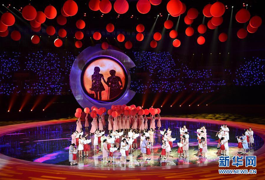 8月25日,演员在开幕式上表演。 当日,中华人民共和国第十届残疾人运动会暨第七届特殊奥林匹克运动会开幕式在天津体育馆举行。 新华社记者李然摄
