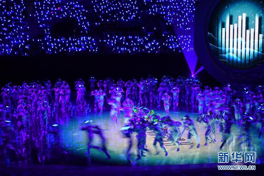 8月25日,演员在开幕式上表演。 当日,中华人民共和国第十届残疾人运动会暨第七届特殊奥林匹克运动会开幕式在天津体育馆举行。 新华社记者李然摄