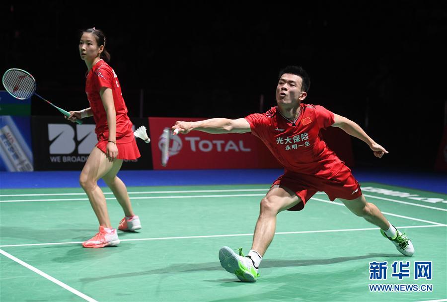 8月25日,中国组合郑思维(右)/黄雅琼在比赛中。 当日,在瑞士巴塞尔举行的2019年世界羽毛球锦标赛混合双打决赛中,中国组合郑思维/黄雅琼以2比0战胜泰国组合德差蓬/沙西丽,夺得冠军。 新华社记者李俊东摄
