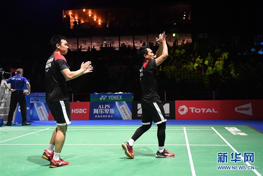 8月25日,印度尼西亚组合阿山(右)/塞蒂亚万在夺冠后向观众致意。 当日,在瑞士巴塞尔举行的2019年世界羽毛球锦标赛男子双打决赛中,印度尼西亚组合阿山/塞蒂亚万以2比1战胜日本组合保木卓朗/小林优吾,夺得冠军。 新华社记者李俊东摄
