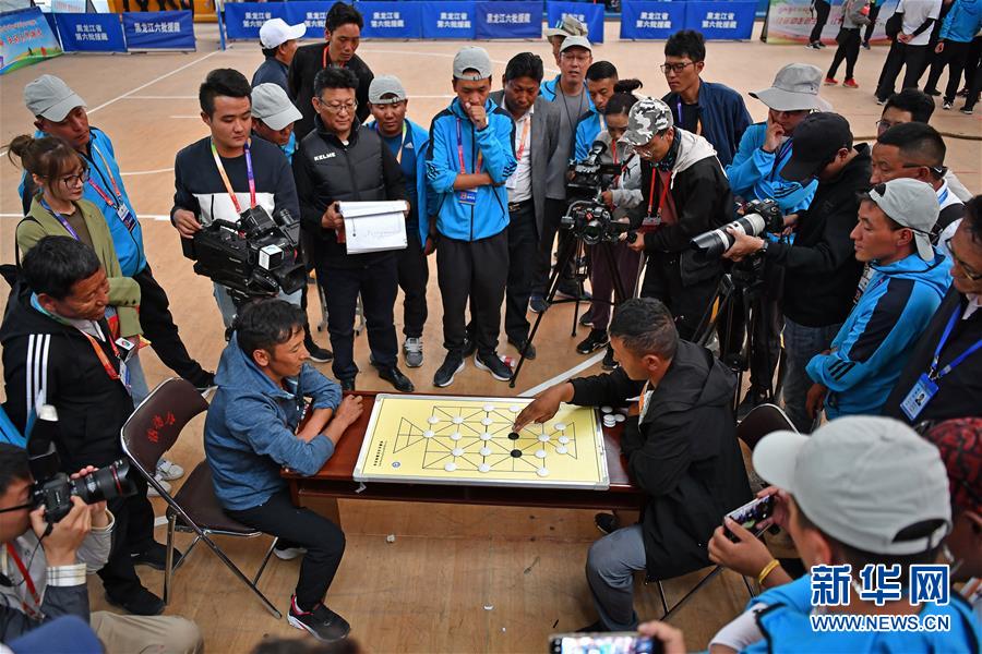 8月29日,岗巴县参赛选手格玛次仁(左)和吉隆县参赛选手加央在决赛中对弈。 当日,在西藏日喀则市首届农牧民运动会上,34名藏棋爱好者同场对弈,一决高下。 藏棋又名“多眼棋”或“多目戏”,是长期流行在青藏高原的一种古老棋类游戏。藏棋历史源远流长,棋种丰富,男女老少皆宜,兼具竞技性与趣味性,是藏民族社会文化生活中的重要内容。 新华社记者李鑫摄