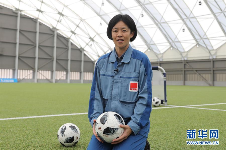在日本福岛J-Village全天候练习场内,东京电力公司员工、前日本职业女足联赛球员增田亚矢子接受记者采访。(8月2日摄) 新华社记者杜潇逸摄