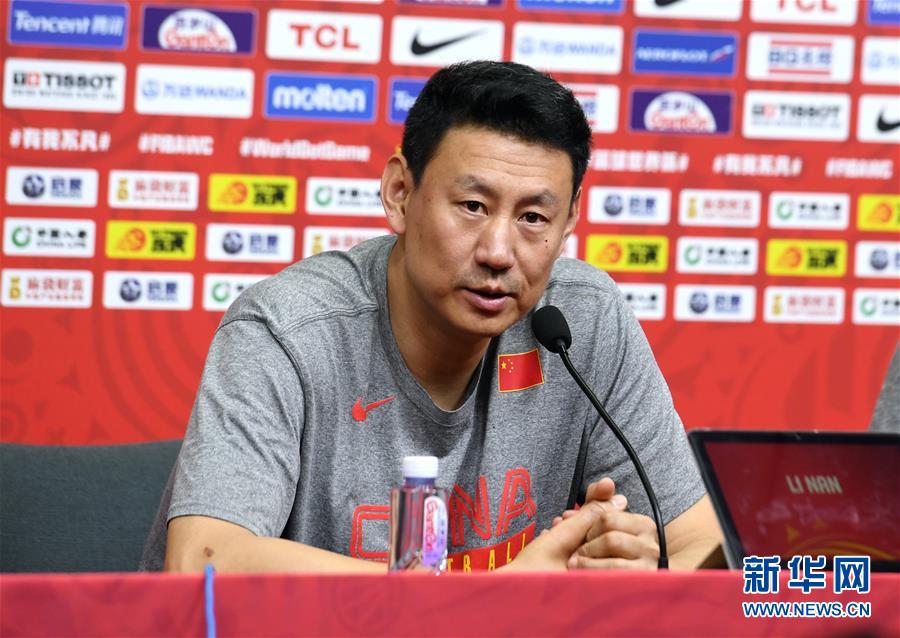 8月30日,中国队主教练李楠在新闻发布会上。 当日,中国队在五棵松体育馆进行训练并举行赛前新闻发布会。中国队的本届男篮世界杯首战将于8月31日进行。 新华社记者张晨霖摄