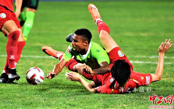 8月31日晚,2019中甲联赛第24轮比赛,在国家奥体中心体育场进行,北京北体大队主场以3比1战胜新疆雪豹队。北京北体大队凭借戈武的梅开二度以及梁学铭的外围远射,最终以3比1战胜新疆雪豹队。北京北体大队执行教练宿茂臻代替高洪波首次担任执行教练。图为双方的比赛瞬间。工人日报-中工网许之丰摄影报道
