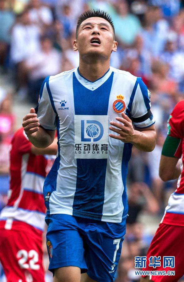 9月1日,西班牙人队球员武磊在比赛中。 当日,在2019-2020赛季西班牙足球甲级联赛第3轮比赛中,西班牙人队主场以0比3不敌格拉纳达队。 新华社发(胡安·戈萨摄)