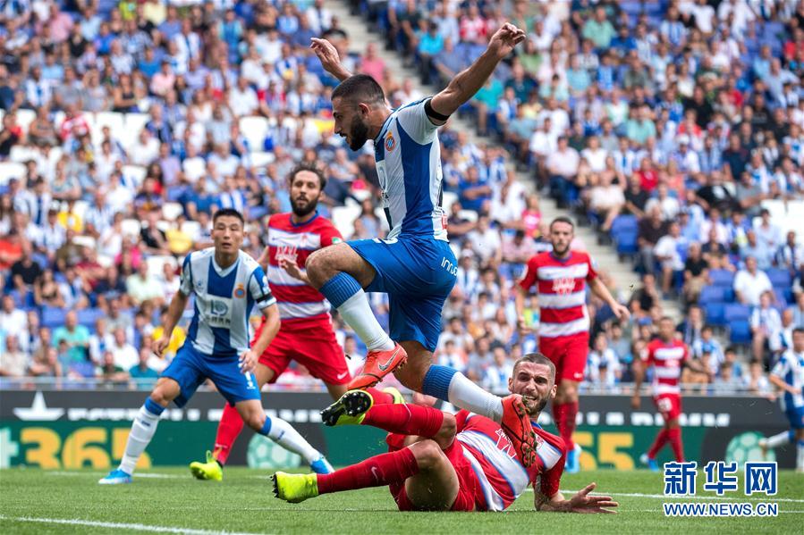 9月1日,西班牙人队球员马蒂亚斯·巴尔加斯(前)在比赛中突破。 当日,在2019-2020赛季西班牙足球甲级联赛第3轮比赛中,西班牙人队主场以0比3不敌格拉纳达队。 新华社发(胡安·戈萨摄)