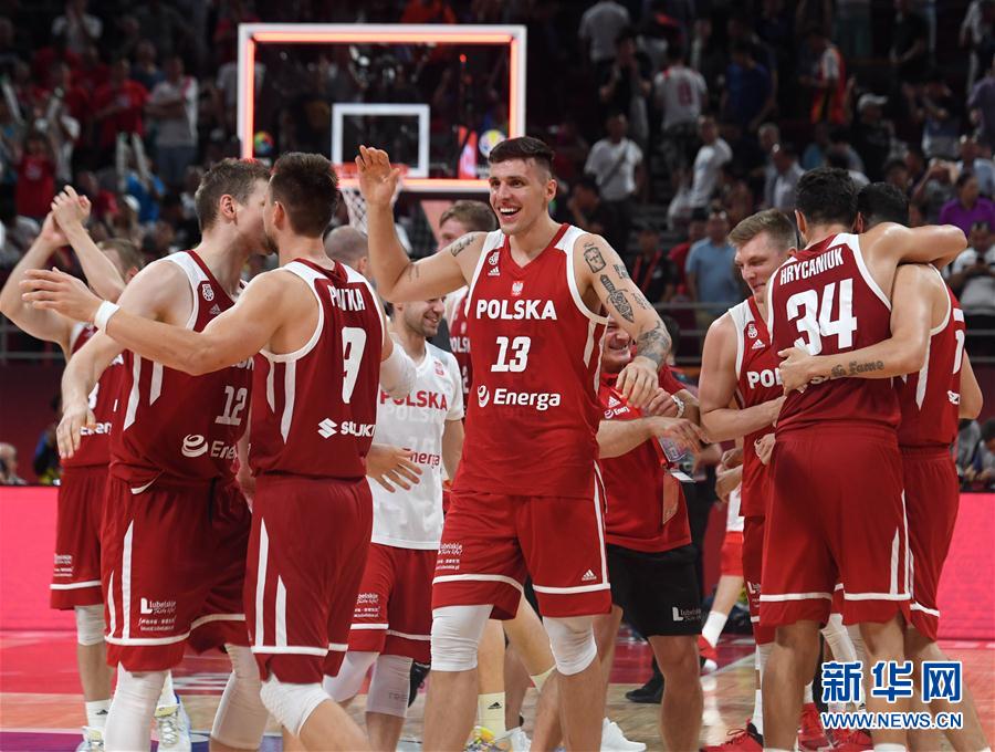 9月2日,波兰队球员在比赛后庆祝胜利。 当日,在北京举行的2019年国际篮联篮球世界杯小组赛A组比赛中,中国队和波兰队在常规时间战平,通过加时赛,最终中国队以76比79不敌波兰队。 新华社记者张晨霖摄