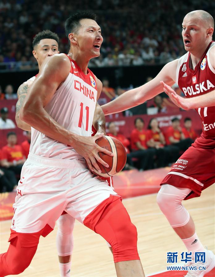 9月2日,中国队球员易建联(左)在比赛中准备上篮。 当日,在北京举行的2019年国际篮联篮球世界杯小组赛A组比赛中,中国队和波兰队在常规时间战平,通过加时赛,最终中国队以76比79不敌波兰队。 新华社记者孟永民摄