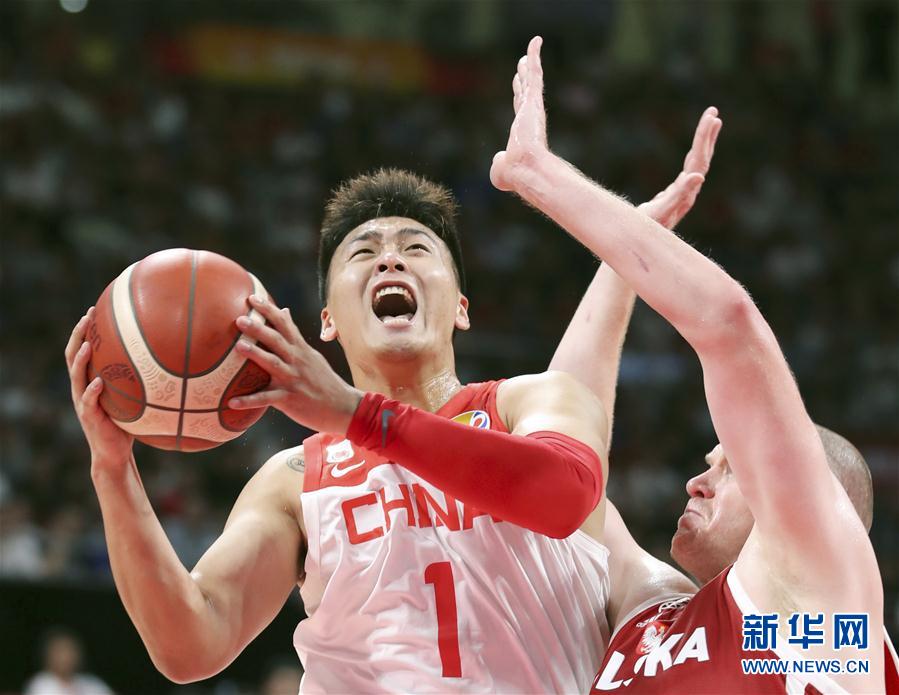 9月2日,中国队球员赵睿(左)在比赛中突破。 当日,在北京举行的2019年国际篮联篮球世界杯小组赛A组比赛中,中国队和波兰队在常规时间战平,通过加时赛,最终中国队以76比79不敌波兰队。 新华社记者孟永民摄