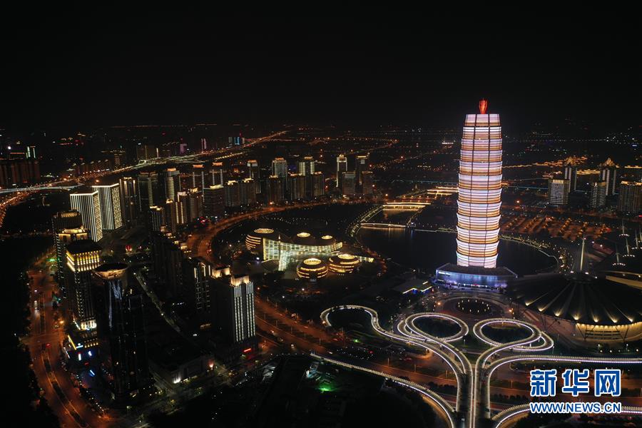 9月8日至16日,第十一届全国少数民族传统体育运动会将首次走进我国中部地区,在河南郑州举办。本届运动会吉祥物名为“中中”,一个“中”字代表了河南人民对国庆70周年前夕这场民族体育盛会的热情和期盼,办好这届盛会,中原儿女义不容辞。 这是无人机拍摄的郑州郑东新区夜景(9月4日摄)。 新华社记者李嘉南摄