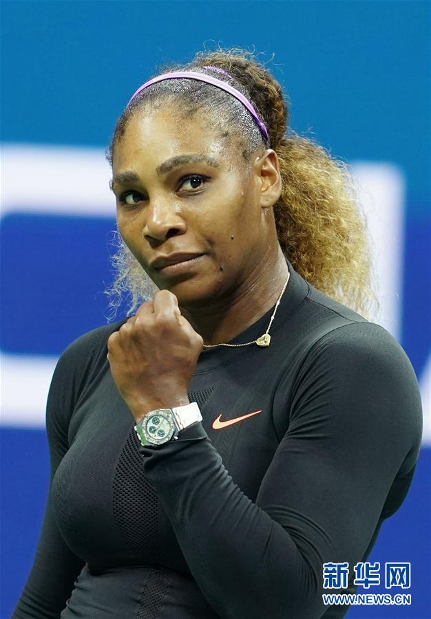 9月5日,小威廉姆斯在比赛中。 当日,在2019美国网球公开赛女单半决赛中,美国选手小威廉姆斯(塞雷娜·威廉姆斯)以2比0战胜乌克兰选手斯维托丽娜,晋级决赛。 新华社记者刘杰摄