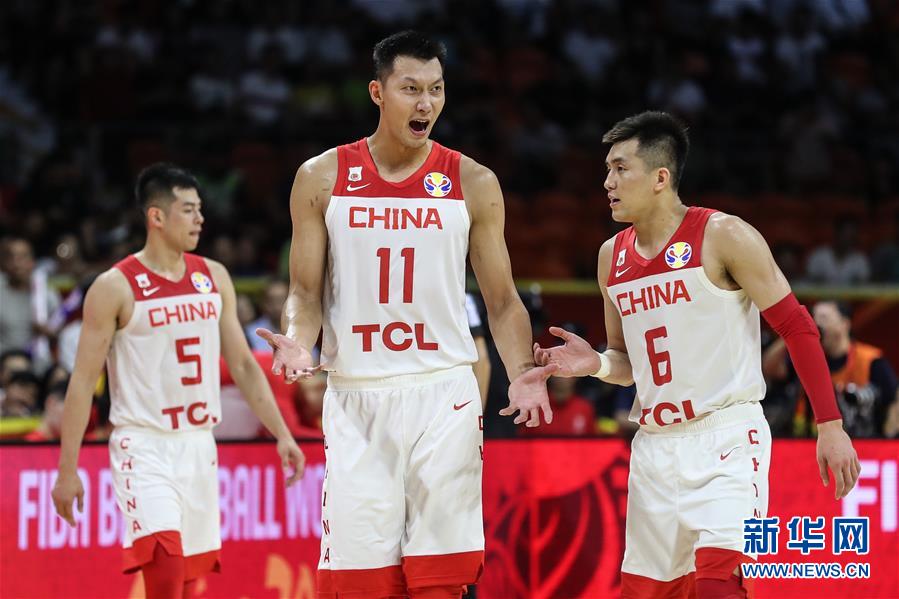 9月6日,中国队球员易建联(中)在比赛中与郭艾伦(右)沟通。 新华社记者 潘昱龙 摄