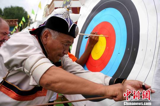 图为蒙古族选手拔箭。 张添福 摄