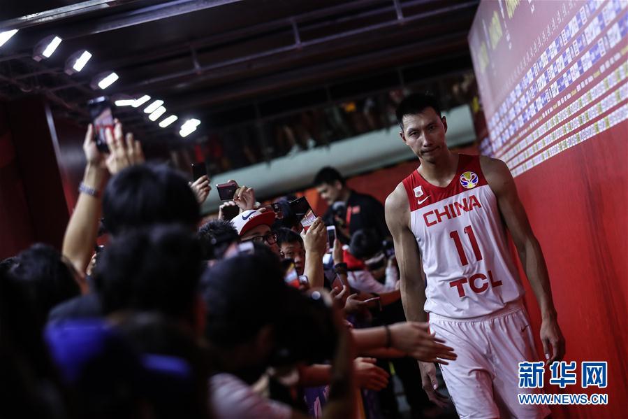 9月8日,中国队球员易建联(右)在比赛后离场。 当日,在广州举行的2019年国际篮联篮球世界杯小组赛第二阶段比赛中,中国队以73比86负于尼日利亚队。 新华社记者潘昱龙摄