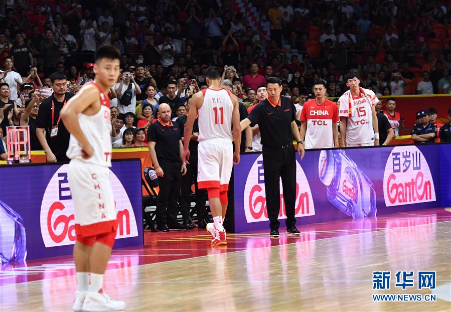 9月8日,中国队球员易建联(中)在比赛中被替换下场。 当日,在广州举行的2019年国际篮联篮球世界杯小组赛第二阶段比赛中,中国队以73比86负于尼日利亚队。 新华社记者贺长山摄
