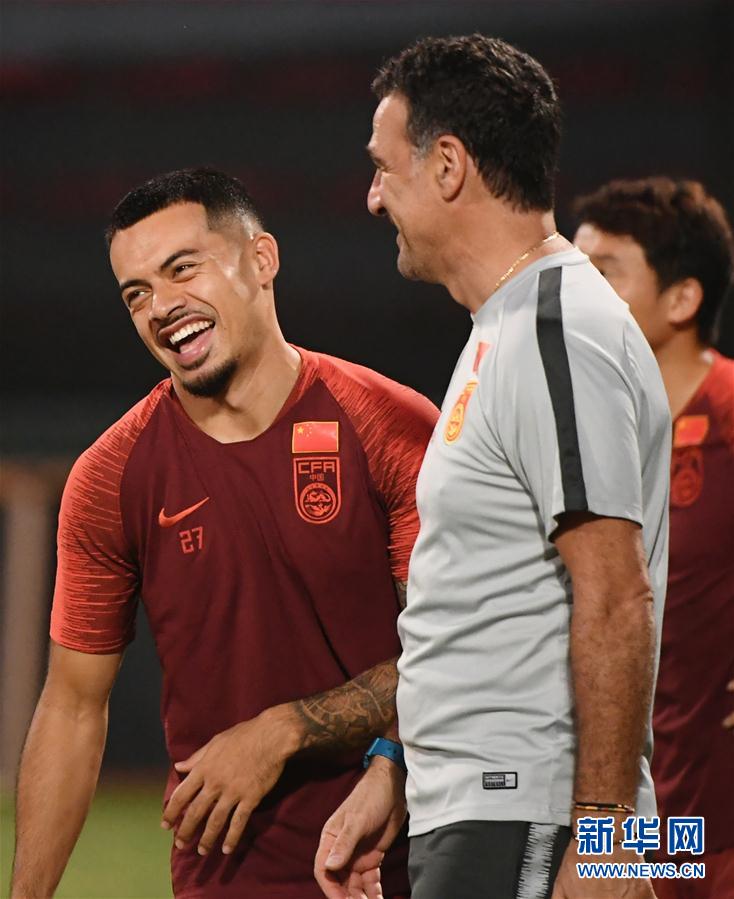 9月8日,中国队球员李可(左)在训练前和教练交流。 当日,中国国家男子足球队抵达马尔代夫首都马累并在马累国家体育场进行首次训练。国足将于10日在2022年卡塔尔世界杯预选赛亚洲区40强赛中客场挑战马尔代夫队。 新华社记者王申摄