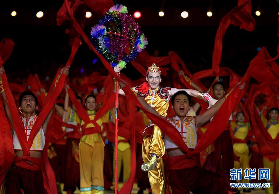 9月8日,演员在开幕式上表演。 当日,第十一届全国少数民族传统体育运动会开幕式在河南省郑州市举行。 新华社记者李安摄