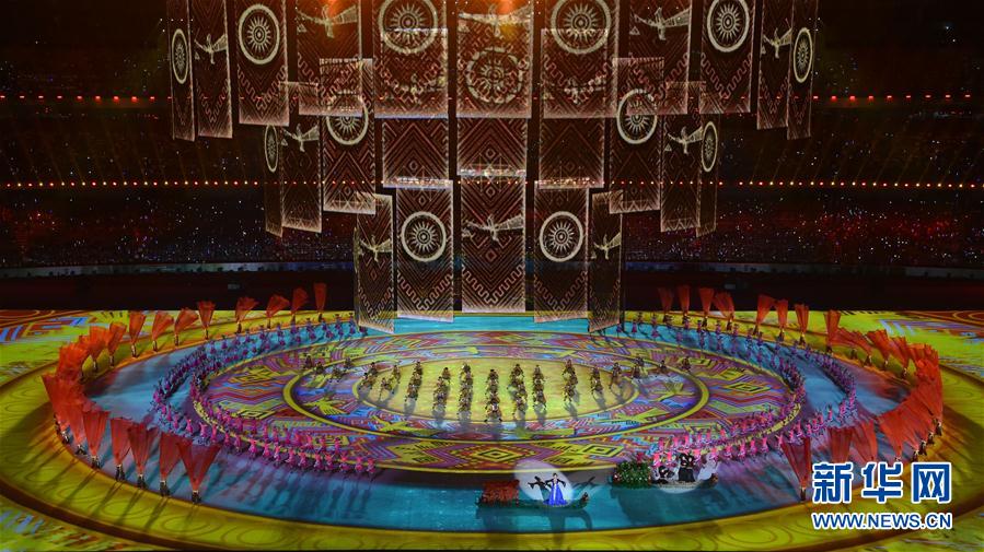 9月8日,第十一届全国少数民族传统体育运动会开幕式在河南省郑州市举行。 图为开幕式上的文艺表演。 新华社记者冯大鹏摄