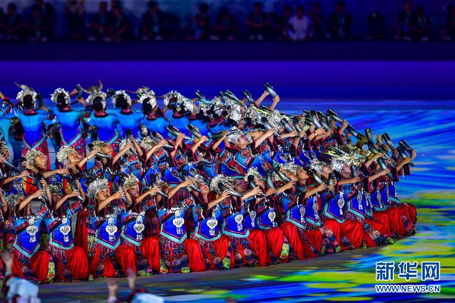 9月8日,演员在开幕式上表演。 当日,第十一届全国少数民族传统体育运动会开幕式在河南省郑州市举行。 新华社记者胡超摄