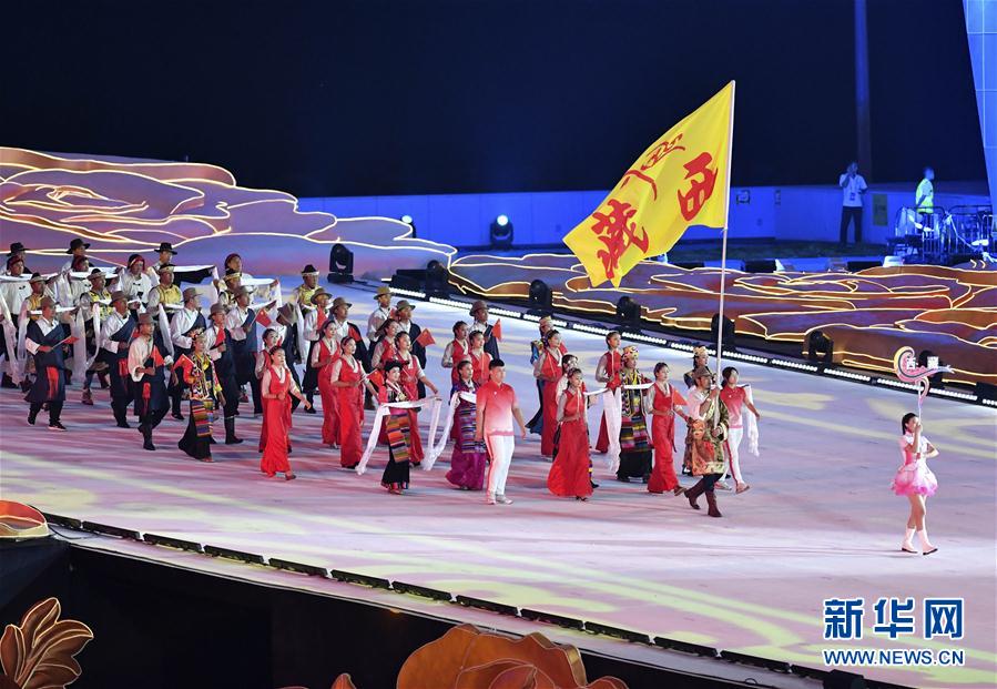 9月8日,西藏代表团步入会场。 当日,第十一届全国少数民族传统体育运动会开幕式在河南省郑州市举行。 新华社记者李嘉南摄