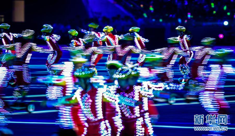 9月8日,演员在开幕式上表演。 当日,第十一届全国少数民族传统体育运动会开幕式在河南省郑州市举行。 新华社记者彭源摄