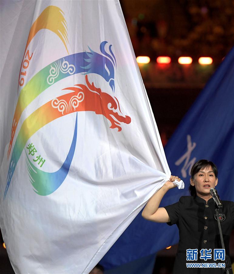 9月8日,裁判员代表在开幕式上宣誓。 当日,第十一届全国少数民族传统体育运动会开幕式在河南省郑州市举行。 新华社记者李安摄