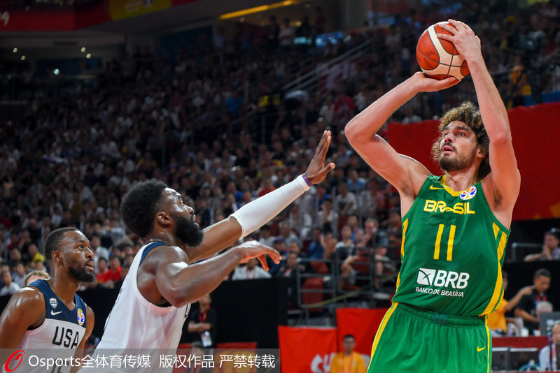 人民网北京9月10日电(郝帅)北京时间9月9日晚,2019篮球世界杯第二阶段复赛K组,美国男篮以89-73击败巴西男篮,世界杯赛场上取得24连胜,以K组第一的身份晋级八强,他们将在四分之一决赛中与法国男篮交锋;巴西男篮的战绩与希腊男篮、捷克男篮同为3胜2负,但他们的净胜分最低,最终排名K组第四无缘八强。由于美国和阿根廷位列美洲区前两名,因此他们直通明年的东京奥运会。
