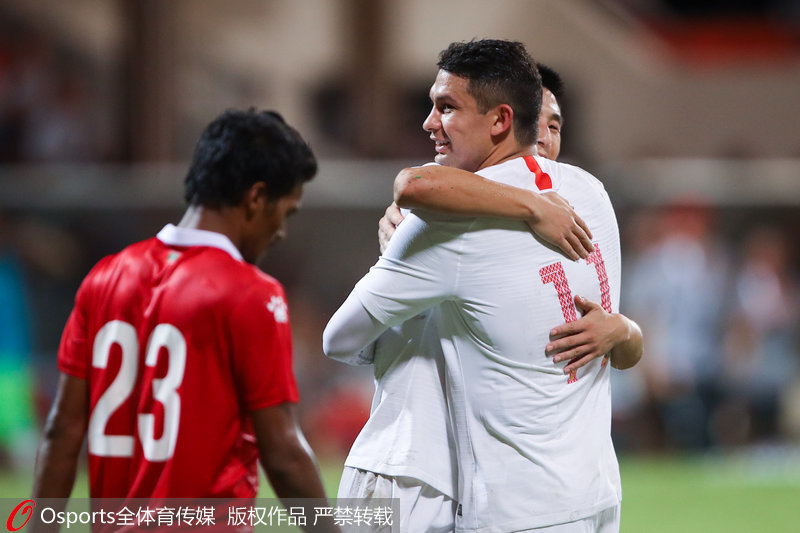 第33分钟,艾克森禁区内连续过人后分球到左路,李磊得球后传中,前点吴曦甩头破门,中国队1-0马尔代夫!